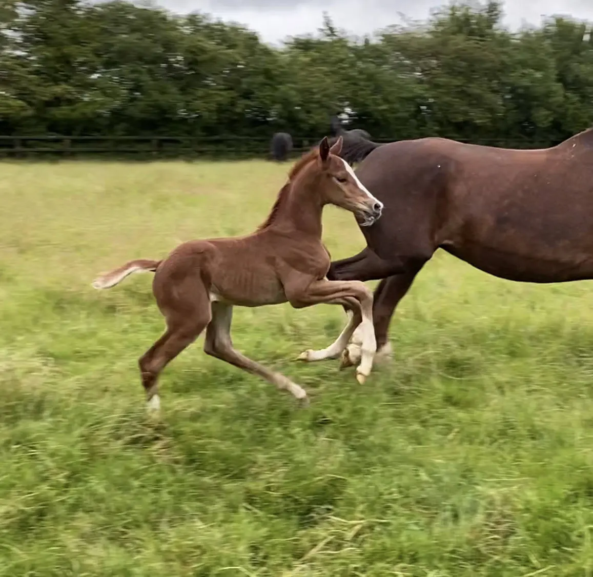 Our mares are grouped in small herds of 3 or 4, all with similar foaling dates and compatible characters. The paddocks are post and railed, on well maintained, well drained land. They are turned out during the day, and stabled at night; where they are under camera. The mares are watched all night (through shared family 'nightwatch' shifts0, and we live on site; attending the birth from the first instance, there to assist your mare should she need help.